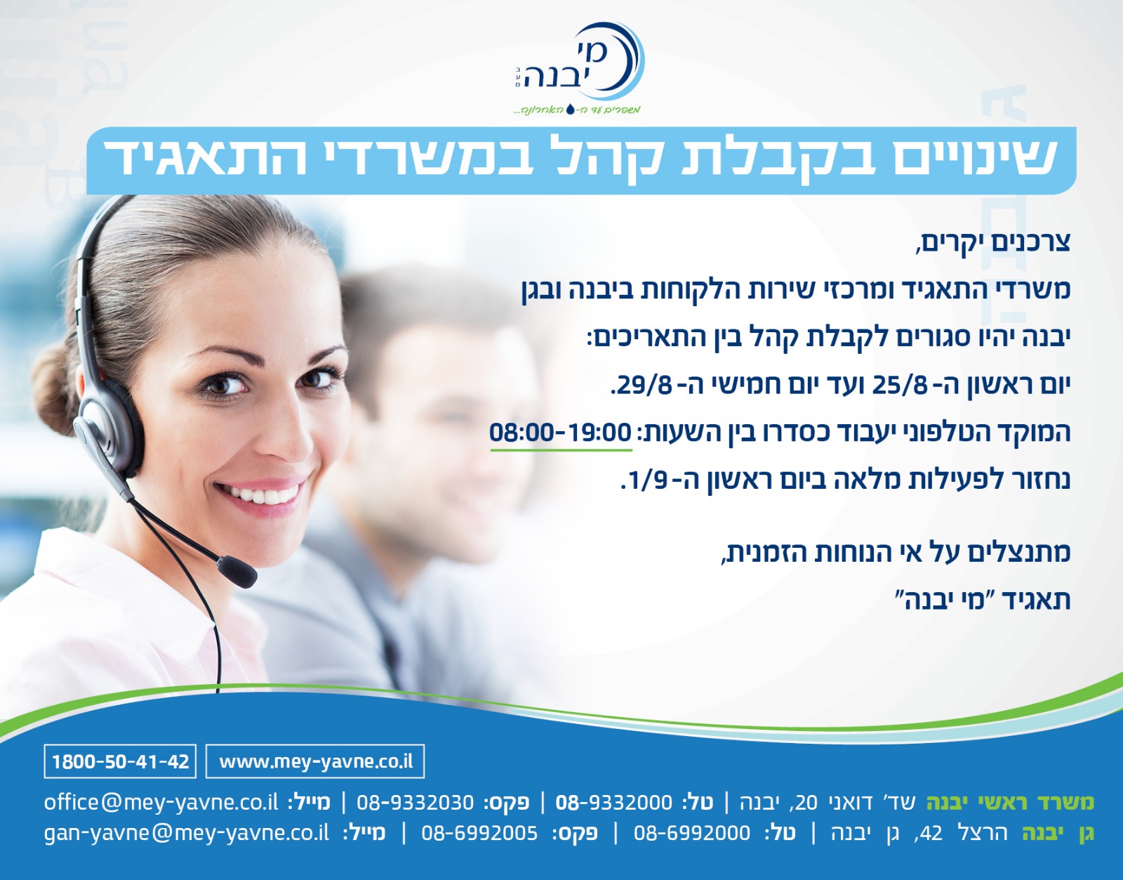 שינויים בשעות קבלת קהל בחודש אוגוסט